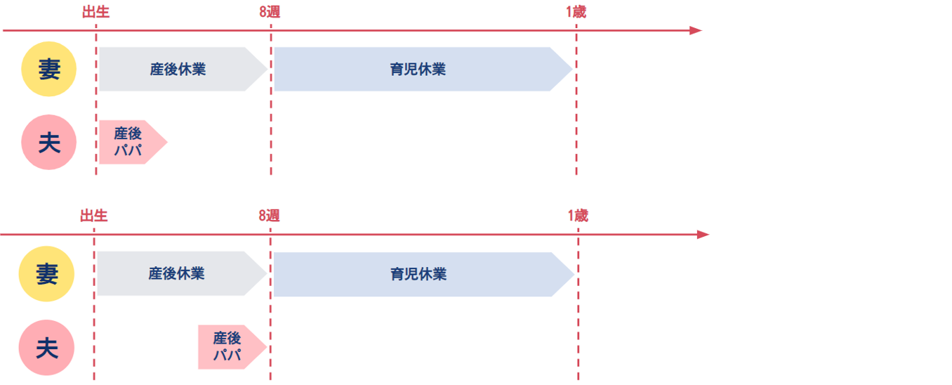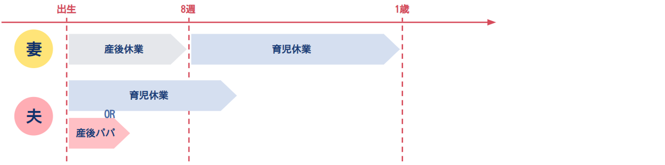4.妻の育児休業と同じタイミングで夫も育児休業を取得(1週間~1年程度)